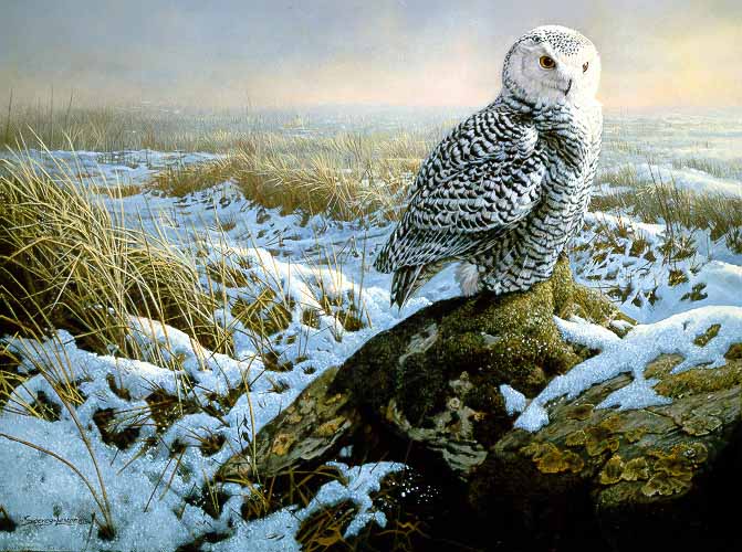JSL – 1Wildlife – Morning Mist – Snowy Owl © John Seerey-Lester