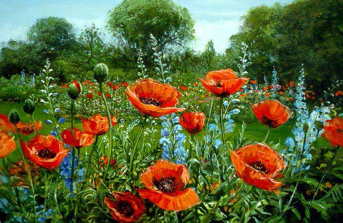 PE – Red Poppies and Delphiniums by Peter Ellenshaw #2027 © Ellenshaw.com, Inc.