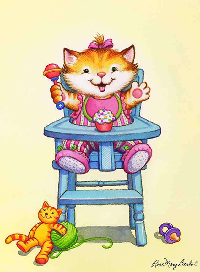 RMB – Kids Illustration – Kitten in High Chair © Rose Mary Berlin