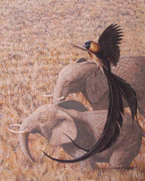 CPBvK – Long-Tailed Paradise Whydah and African Elephants © Carel Pieter Brest van Kempen