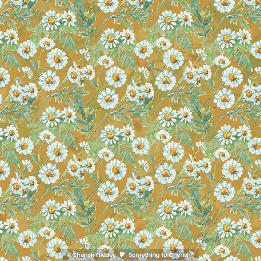 CF – Herbs C2007-10a Chamomile Botanical Pattern Mustard © Cherish Flieder