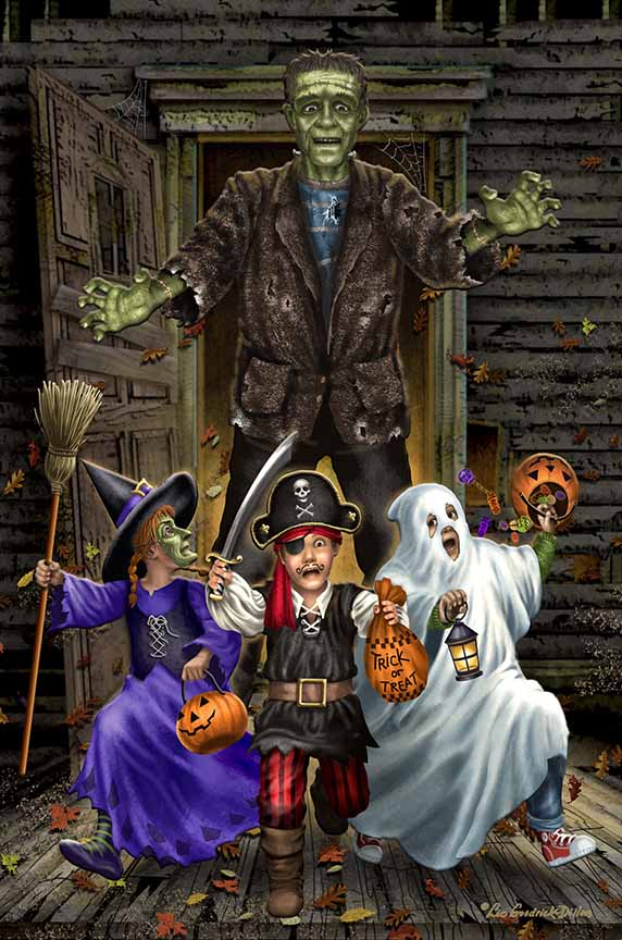 LGD – 5Halloween – Frankenstien Scares Kids © Liz Goodrick-Dillon