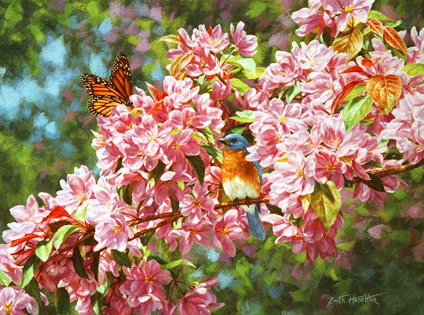 BH2 – Songbirds – In the Blossoms – Bluebird in Crabapple © Beth Hoselton