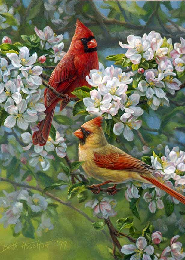 BH2 – Songbirds – Orchard Romance – Cardinals (detail) © Beth Hoselton