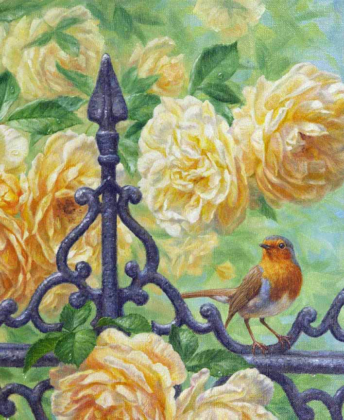BH2 – Songbirds – The English Garden – European Robin and Roses (detail) © Beth Hoselton