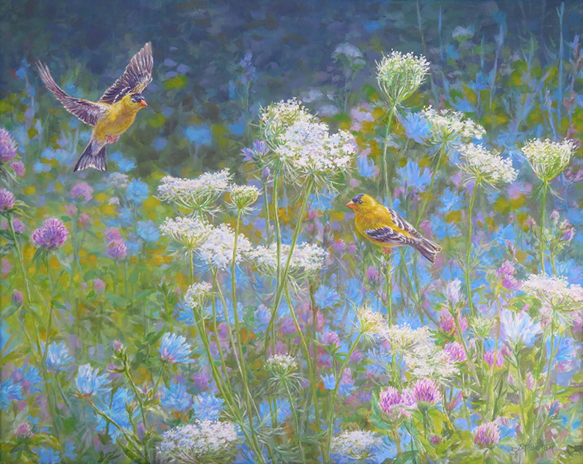 BH2 – Songbirds – Visiting the Meadow – American Goldfinches © Beth Hoselton