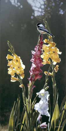 Chickadee and Gladiolas