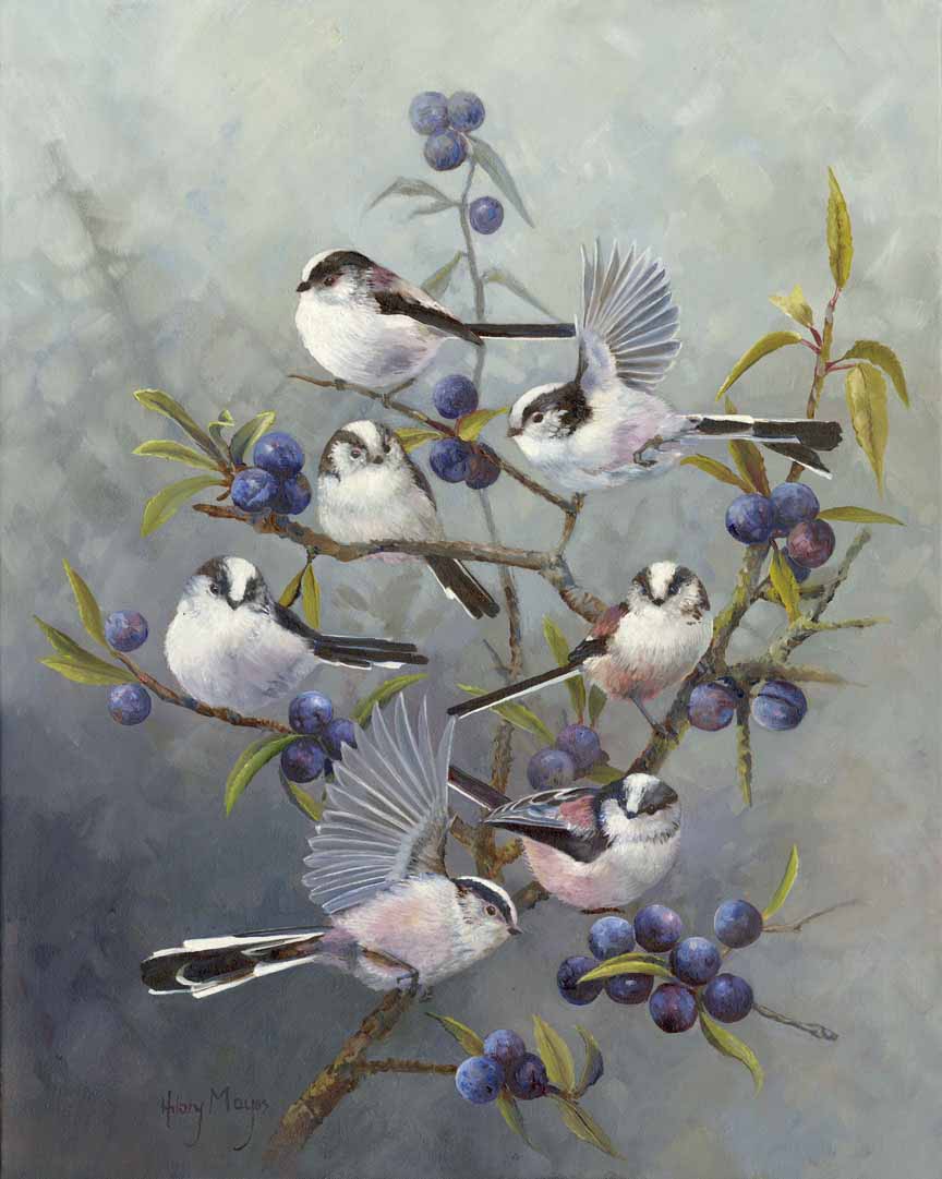 HM – Songbirds – Long Tailed Tits on Fruit Bush © Hilary Mayes