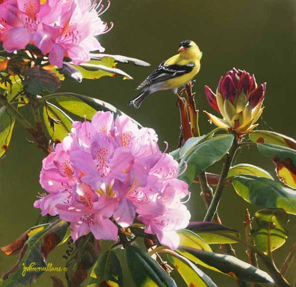 JM – Goldfinch and Rhododendron © John Mullane