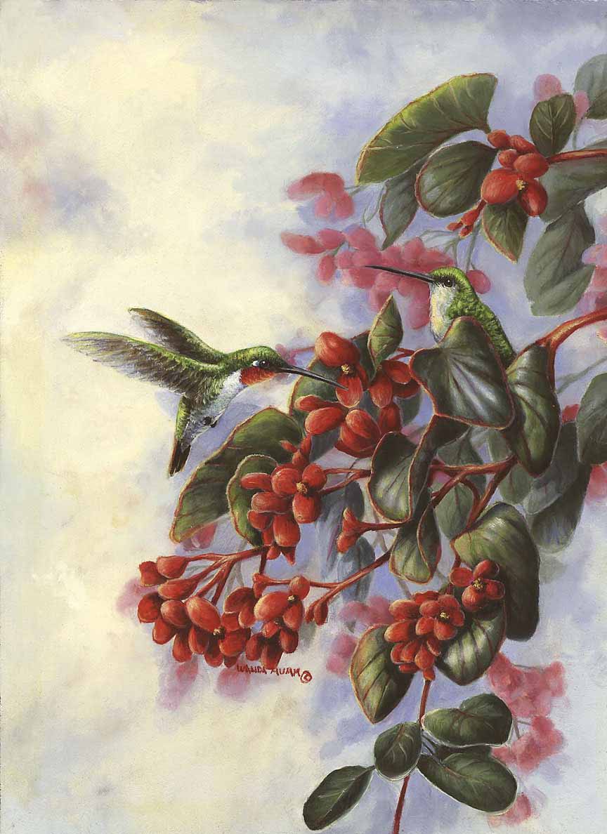 WM – 1Songbird – Hummingbird and Begonia © Wanda Mumm