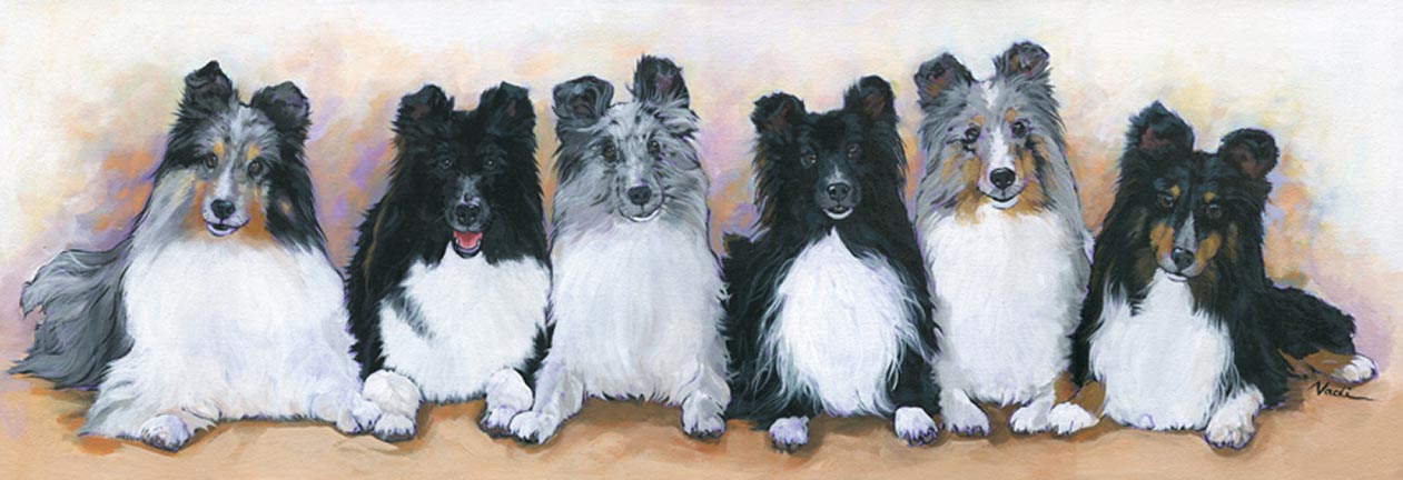 NS – Dogs – Shelties- 20-11 Six Shelties 10×30 © Nadi Spencer
