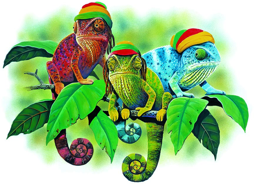 ABH – 4 Animals, Chameleons with Rastacaps, Front 05326 © Art Brands Holdings, LLC