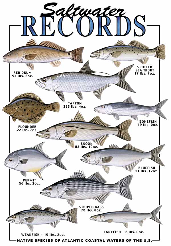 ABH – 4 Fish, Records, Saltwater US Native Species Coastal Waters 05987 © Art Brands Holdings, LLC