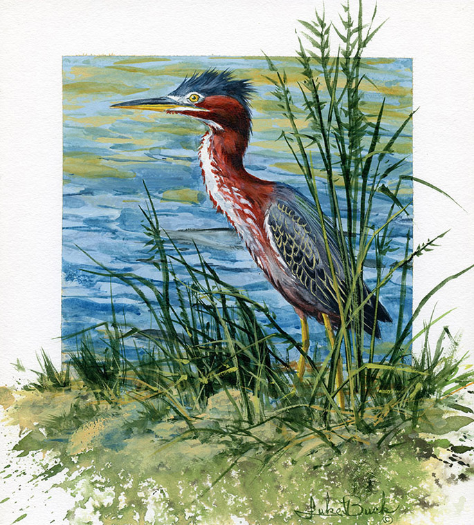 LB – Shorebirds – Perked Up – Green-Backed Heron 2006 © Luke Buck