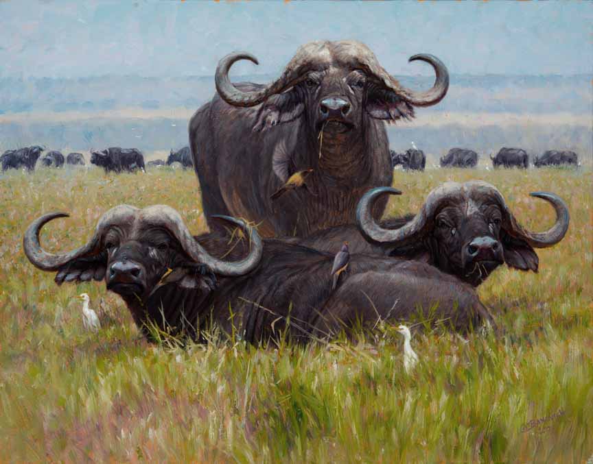JB – African – Nyati in the Sweet Grass © John Banovich