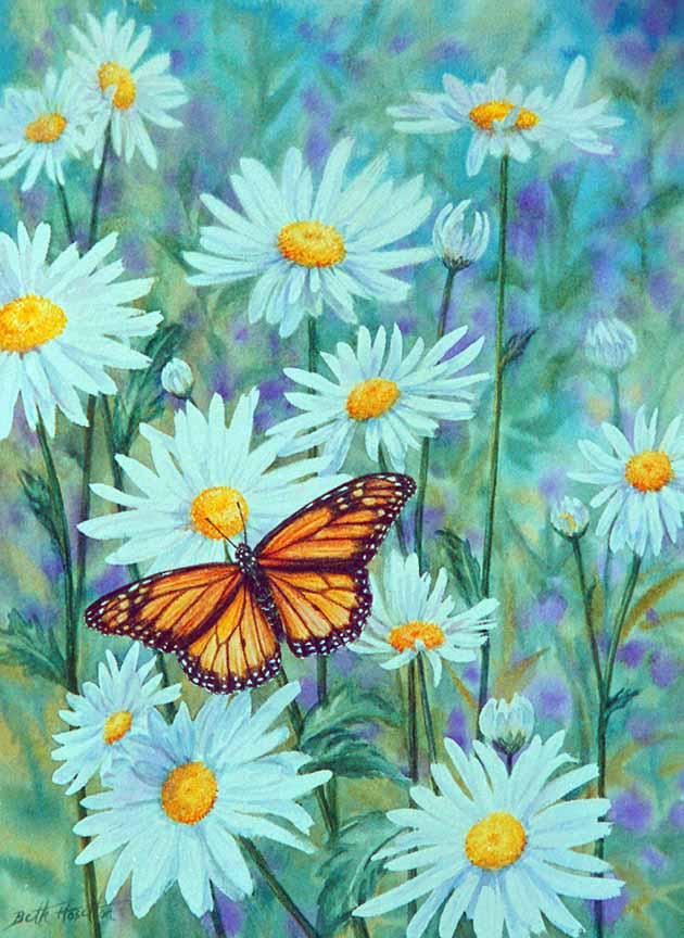 BH2 – Songbirds – Summer Meadow – Monarch Butterfly and Daisies © Beth Hoselton
