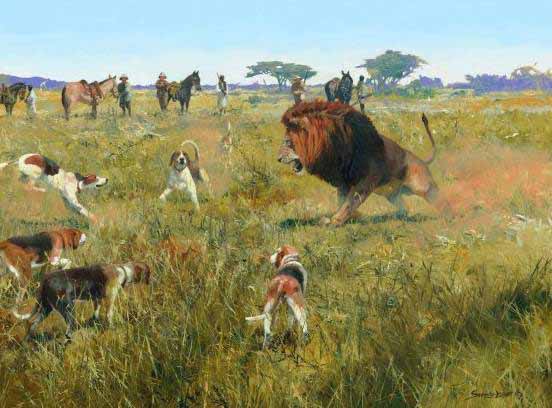 JSL – Historic Hunts, Africa – Lion at Bay © John Seerey-Lester